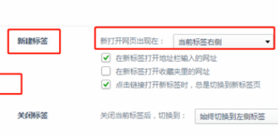 5、在“标签设置”的选项中找到“新建标签”,选择新打开网页出现在“当前标签的右侧”