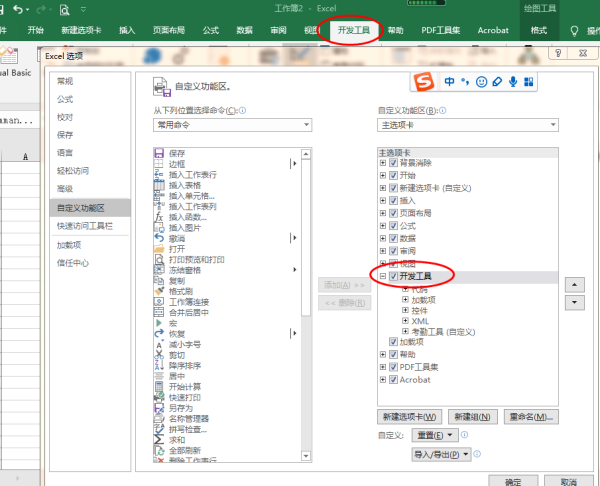 如果菜单栏没有“开发工具”选项卡,右击上方菜单栏空白处——自定义功能区,选中“开发工具”