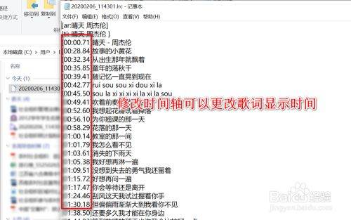 以记事本打开lrc歌词文件,并修改时间轴部分,就能够更改时间显示,详细的编辑操作可以看下方的经验链接。
