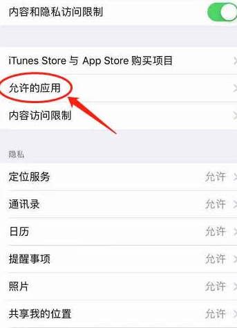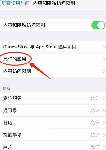 4、如果要隐藏iPad自带的应用,点击“允许的应用”。