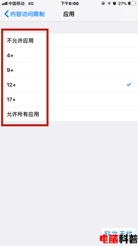 5. 然后对不同的年龄段进行勾选,就可以将一些软件隐藏,如图。