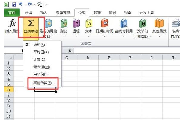 2、然后点击自动求和的下拉箭头,之后点击其他函数;