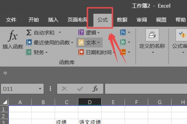 3、然后点击页面上方工具栏中的“公式”选项。
