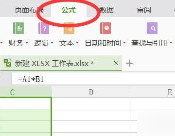 3、点击选择需要设置的单元格,点击【公式】功能菜单,调出功能区。