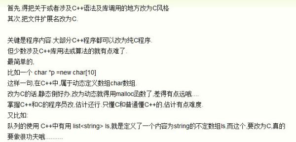 是百度找的。。。因为C和C++的语法不完全一样,要改要懂C和C++的语法规则。。。大概如此。。。希望对你有用。