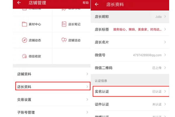 打开微店店长版APP,点击店铺头像—>店长资料—>实名认证,输入正确的姓名、身份证号、银行卡号。