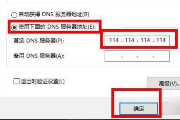 6、选择使用下面的dns服务器地址输入114.114.114.114这个。