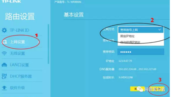 二、登录撸起看设置,路由器里面的网络配置信息,主要是:与外网络连接wan口设置,比如选择PPPOE、设备拔号帐户和密码、开启DHCP服务器;