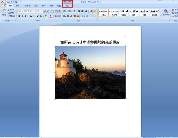 1.打开word后,选中要调整的图片,word选项里就弹出了“图片工具格式”选项;
