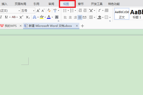 1、首先在电脑上用WPS文字软件打开一个文件,页面是淡绿色背景。