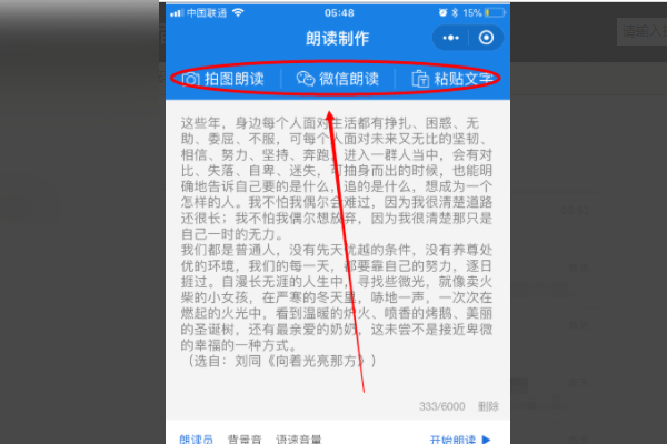 4、然后我们导入文字,可以通过拍照识字、复制粘贴文字、或者从微信里选择文字内容的方法导入。