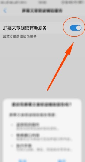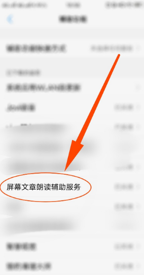 4、点击“屏幕文章朗读辅助服务”,如下图所示: