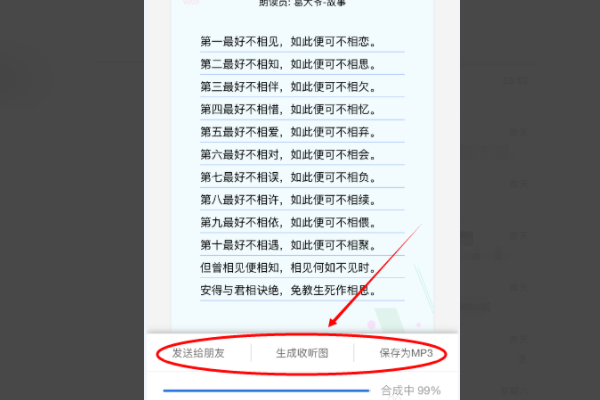 7、然后我们保存分享,发送给好友、生成收听图、保存为MP3即可。