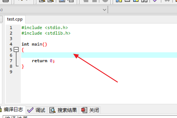 1、首先,打开C语言编译器,新建一个初始.cpp文件,例如:test.cpp。
