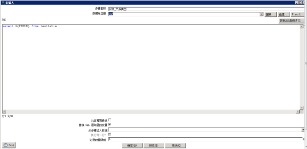 比如你在这里设置了一个变量名叫FIELD,你在之后的转换“表输入”控件里SQL可以这么写