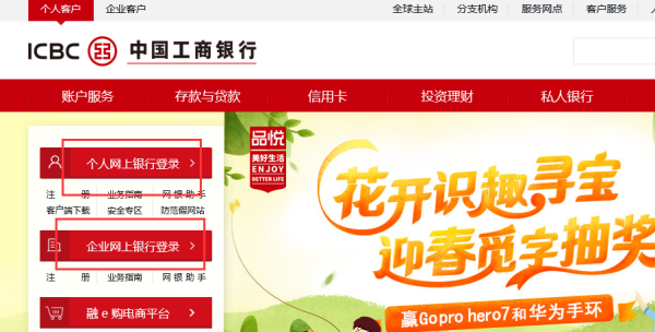 7、打开官网后,选择个人网上银行或者企业网上银行进行登录即可