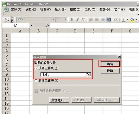 5、选择导入数据的位置,点击“确定”。