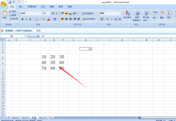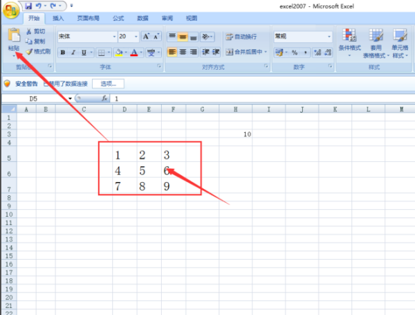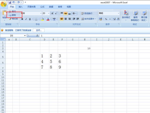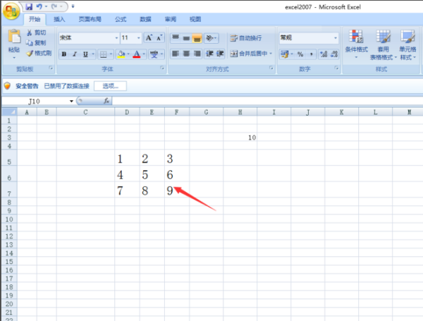 1、打开excel2010表格可以看到数据区域,下面演示如果使数据区域直接都乘以10