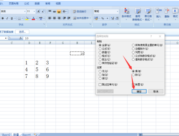 7、在弹出的对话框中选择“乘”,点击“确定”