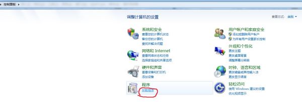 2、在弹出的对话框中选择“程序”下方的“卸载程序”