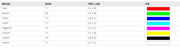 可以配合使用函数find和函数length或者函数find和函数length求得。 1、函数find和函数length配合使用获得像素为value的像素个数 1 2 3 4 5 6 7 8 % 读入数据112.bmp是要读入的图像 i = imread('112.bmp'); % 如果为彩色图像需转为灰度图像,否则不需要 i = rgb2gray(i); % value为要计算的像素值 [r,c]=find(i==value); % 获得个数 num=length(r); 2、函数find和函数sum配合使用获得像素为value的像素个数 1 2 3 4 5 6 % 读入数据112.bmp是要MATLAB中的绘图函数有那几种颜色呀?
