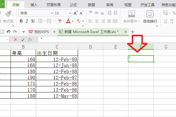 2、然后在英文输入法状态下,在单元格中输入一个符号【'】。