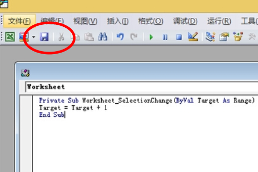 5、最后就是这样点一下,数字就会 加一,弄好之后再按alt+F11,把代码删除,保存即可。