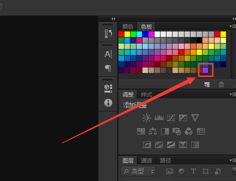 六、这样就可以把之前选中的颜色添加入色板内,以后可以随意点击该颜色使用。