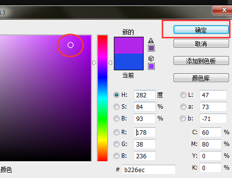 二、在前景色窗口内选中一个要添加的颜色,点击“确定”。