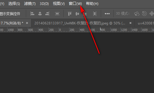 1、电脑打开photoshop,然后点击工具栏中的窗口。