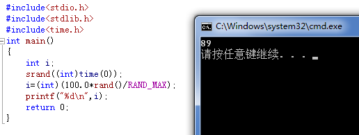 所以i=(int)(100.0*rand()/RAND_MAX);