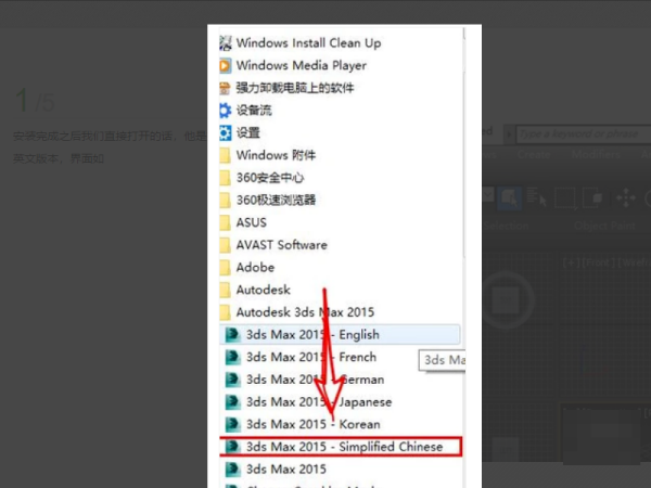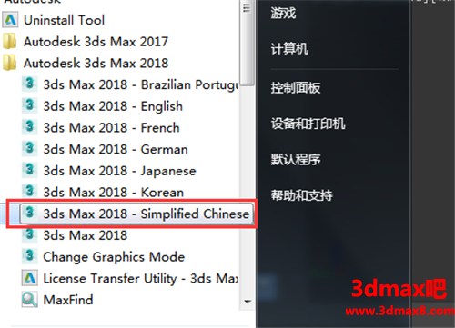切换3dmax2018语言版本的方法一:直接在开始菜单选择