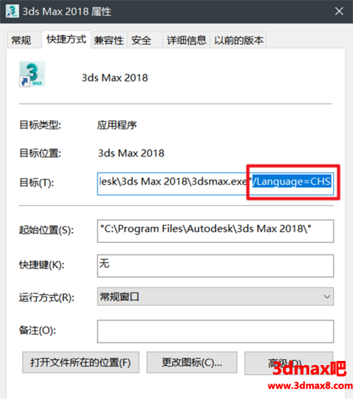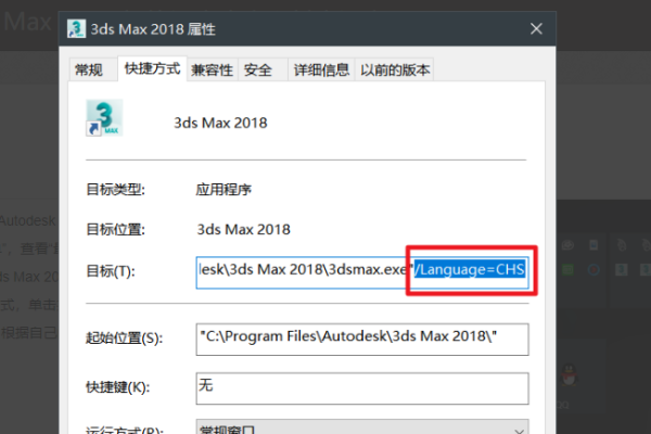 更改3dmax软件开启时的运行属性,也可以方便切换为不同的语言版本。