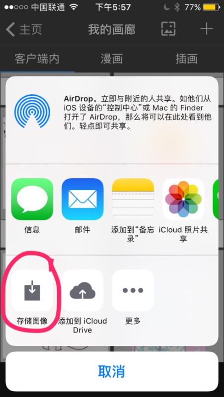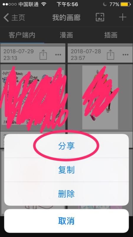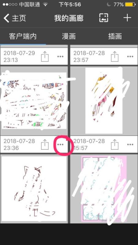1.在我的画廊里选好要导出的作品,然后按下那个“…”