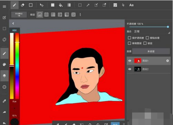 6、填充:选择填充工具,先将背景填成纯色或其它,然后开始填充头发,面部区域,眼睛等,颜色自己搭配就好。