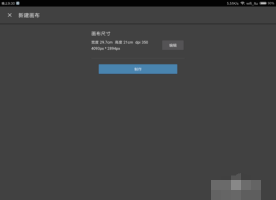 1、新建画布,尺寸最好与原图尺寸匹配,我随便找了一张电影截图,尺寸设置成了“宽29.7高21 dpi350”(其实就是横过来的A4纸尺寸,因为电影截图是横板图片)。