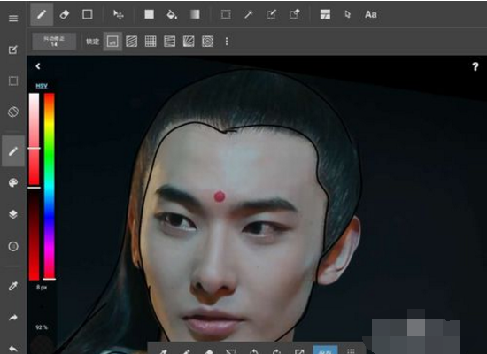 5、画笔调试完毕,开始描轮廓,将图片放大,细细的描,然后,线一定要闭合。