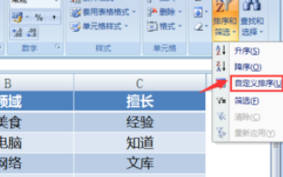 2、选中姓名这一列的数据,选中的标志就是表格的粗黑线,之后,依次在“开始”选项卡上选择:“编辑”-“排序和筛选”-“自定义排序”。