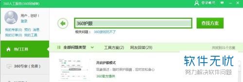 我们长时间对着电脑的话,眼睛很容易会变得干涩,稍微揉揉会有刺痛感流眼泪。那么,我们该如何保护好自己的眼睛呢?其实,360安全软件软件里面有个健康精灵,可以设置为护眼的哦。接下来,就随 2、点击右下角的“更多”,会出现很多工具选项。往下拉,在实用小工具里找到健康精灵。  3、点击健康精灵,进行安装。安装完毕之后,绿色的健康精灵会出现在电脑显示屏幕中。  4、点击健康精灵的手,会出现四个不同的按键,点击第一个按键,会出现健康护士的设置画面。  5、选择一个适合自己的模式。  6、开启右边上面的开启视力保护色。开启后会有绿色的横线出现。  7、打开文档,背景就变成视力保护色了。而且还会有定电脑360护眼模式在哪里设置