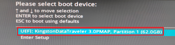3.将制作好Windows 11操作系统的USB随身碟插入主板USB口,开机并按压键盘F8键直到出现如下画面,并将游标移动到[UEFI:USB随身碟]后按压键盘Enter键