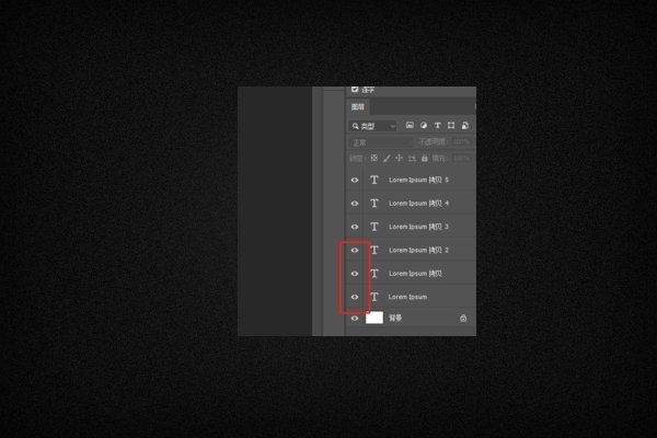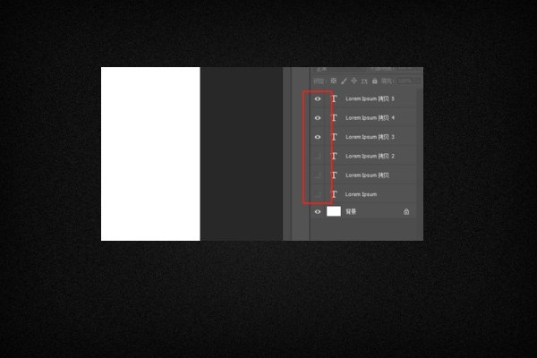 3、隐藏图层。点击图层左侧的小眼睛图标,图标消失的状态下,图层就是隐藏的。提示:点击并按住第一个图层的隐藏图标,从上到下或从下到上拖动到最后一个,可以快速隐藏所有的图层。