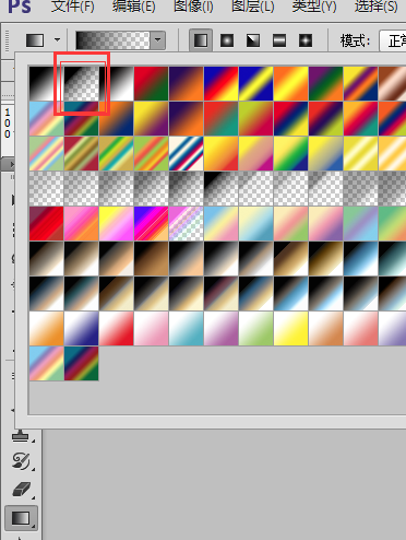 渐变工具副属项点击下拉箭头 选择第二个渐变透明图版