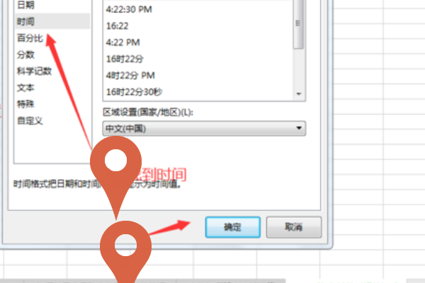 1、先选定数据区,设置单元格格式为需要的时间格式;