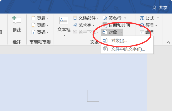 3、点击其中的“对象”的下拉菜单中的“对象”选项。