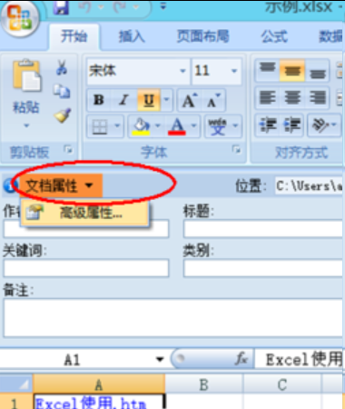 2丶在属性的下拉菜单中点击文档属性中的高级属性。