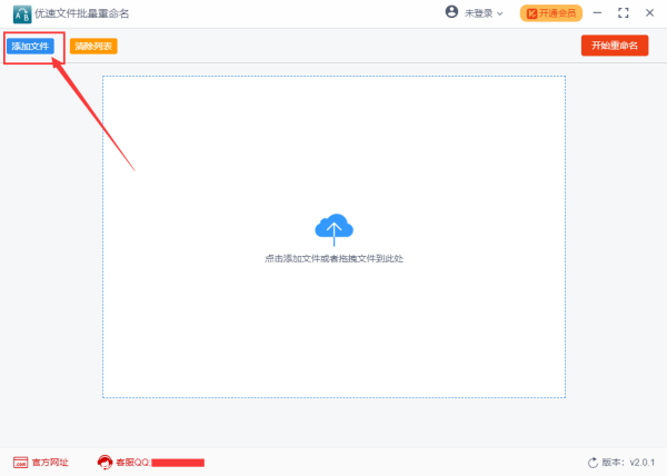 步骤1,安装软件后打开,点击【添加文件】按钮,将需要修改名称的文件全部添加到软件中,也可以通过将文件拖动到软件上的方式进行添加。