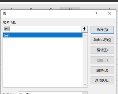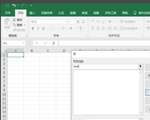 2、使用快捷键Alt+F8, 这样就打开了宏新建页面,为宏起名字为test 如图,命名之后就可以点击创建,接下就是填写vba代码啦。