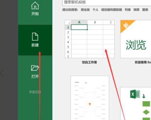 1、首先打开excel程序,点击新建,新建空白工作簿。