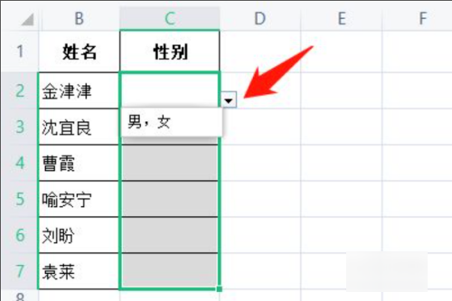 4、最后,点击确定,下拉列表就设置好了,当需要输入内容时,直接点击下拉菜单进行选择即可。