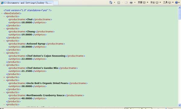 ds.WriteXml(@"C:\DocumentsandSettings\JackeyTine\MyDocuments\Projects\productstable.xml");